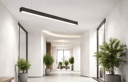 The extruded aluminium housing offers a precise in-line appearance. This LED fixture comes with excellent light distribution, high wired LED driver to be used in suspended applications with higher efficacy.